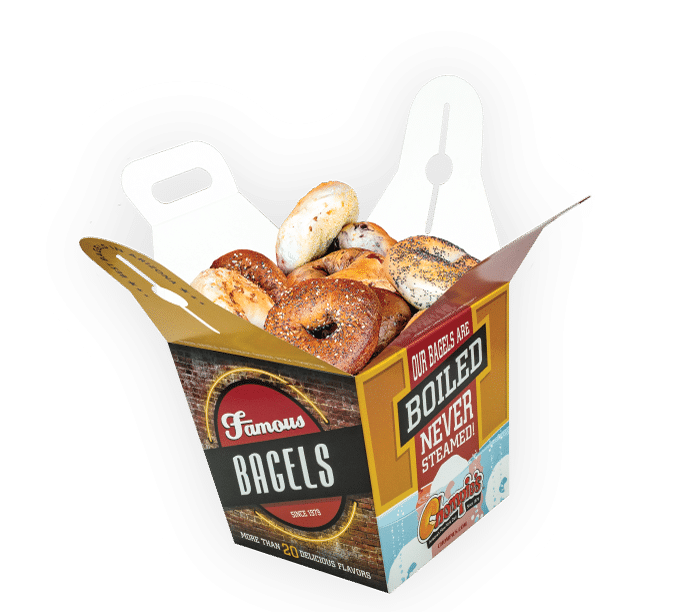 Weekly deals on bagel boxes and other limited time offers only available at our chompies locations.