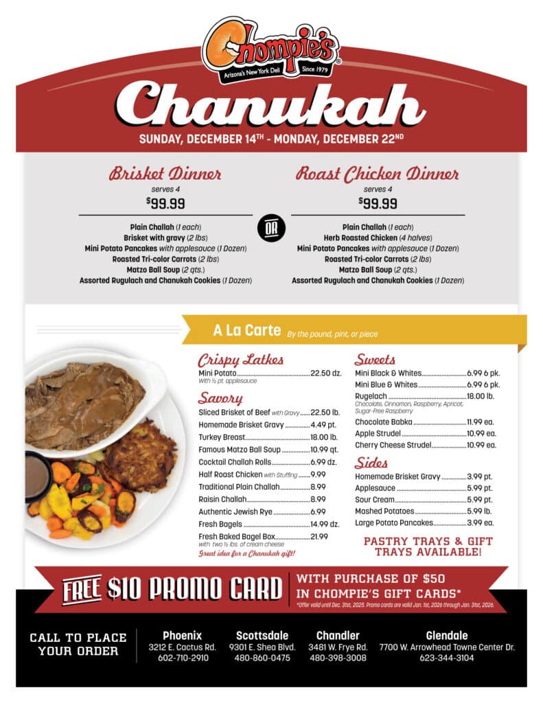 Enjoy Our Festive Chanukah Dinner At home By the Pound, Pint, or Piece